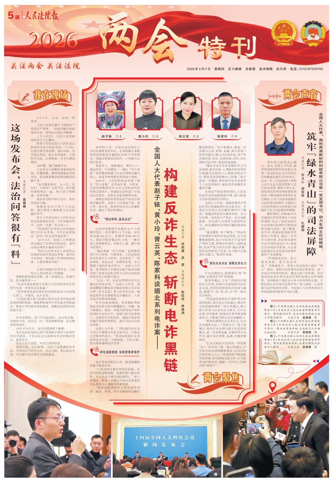 中国绿色时报“两会绿色微评”专栏设置“林草热点”“图解视频”等栏目,紧扣生态环境法典、国家公园建设等议题,采访代表委员和专家,介绍行业立法的重要性和立法工作的专业性,发出行业权威声音。中国石油报围绕中国石油“建设能源强国、赋能美好生活”战略使命,突出全媒体融合传播,以《两会“金”睛》Vlog、即时评、快剪等形式增强现场感与传播力,以生动活泼的形式深入宣传“能源的饭碗必须端在自己手里”的时代意义。人民铁道报开设“向全国两会汇报”全媒体专栏,“小金工作室”重点打造融媒体产品《2026我的飞驰人生,从这场盛会开始》,以今年春运的“五个之变”展现“十四五”时期铁路高质量发展的“全景式视觉报告”。