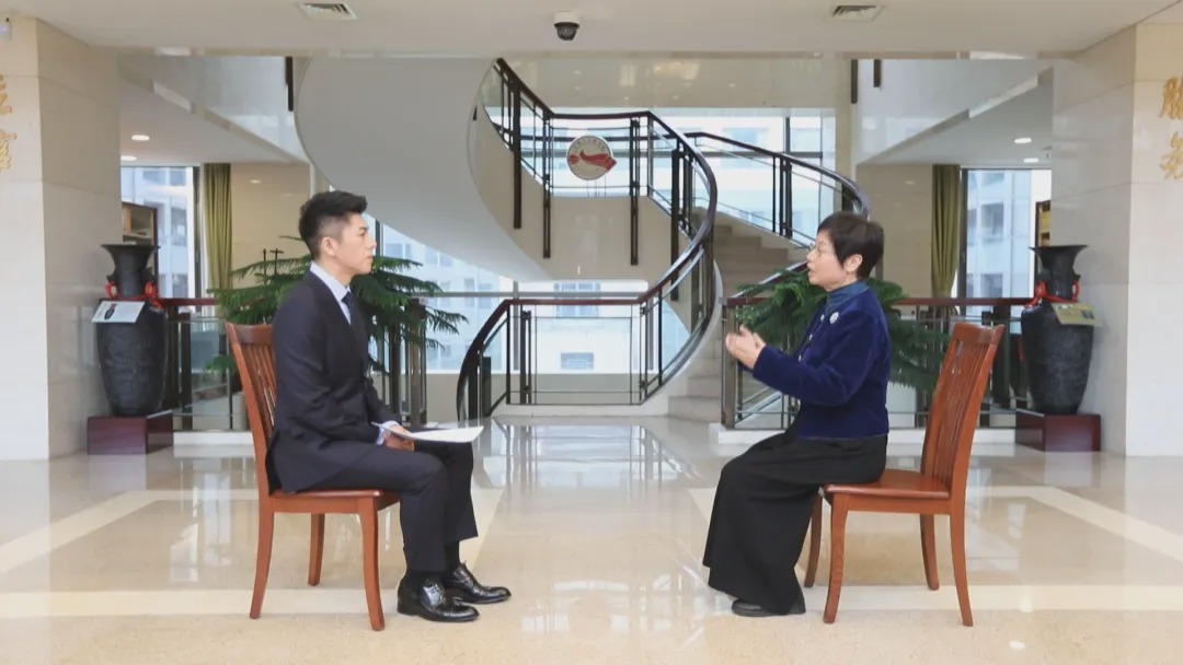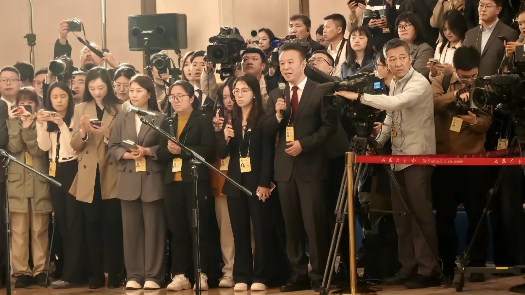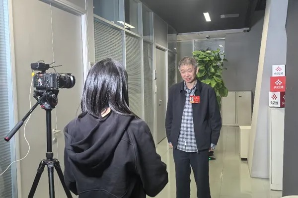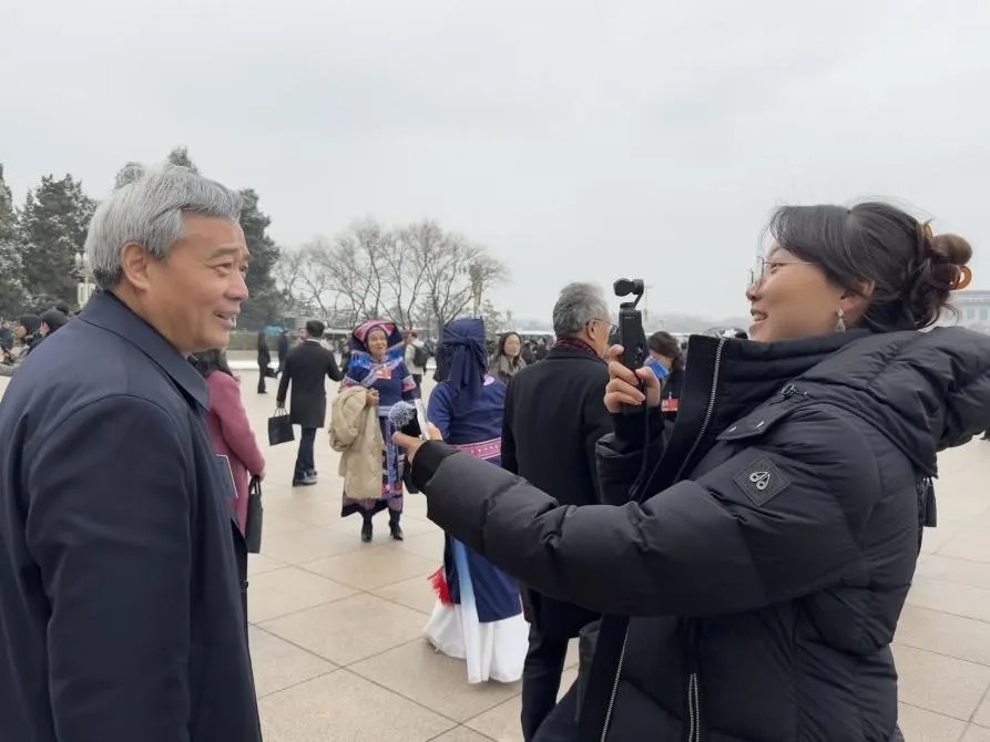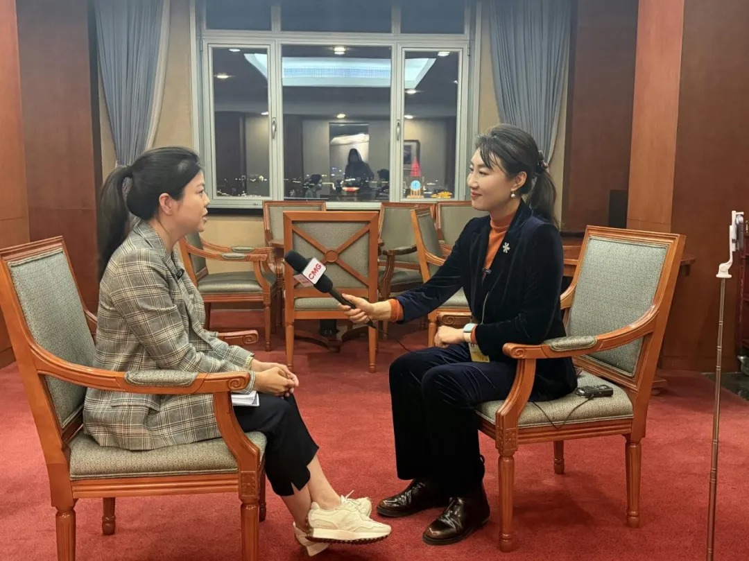 3月5日,央视中文国际频道记者骆魏、苏龙臻采访全国人大代表。