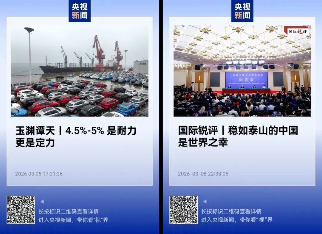 3.言论评论品牌《玉渊谭天》推出《4.5%-5%是耐力 更是定力》,以广东、山东等经济大省的转型实践,展现中国在复杂国际环境下稳住基本盘、推动高质量发展的战略定力,向世界传递中国经济发展的底气与信心,被全网置顶推荐。《国际锐评》推发《稳如泰山的中国是世界之幸》《开局之年增长目标里的“世界机遇”》等4期评论,用数据与事例,鲜活阐释全过程人民民主这一制度优势。