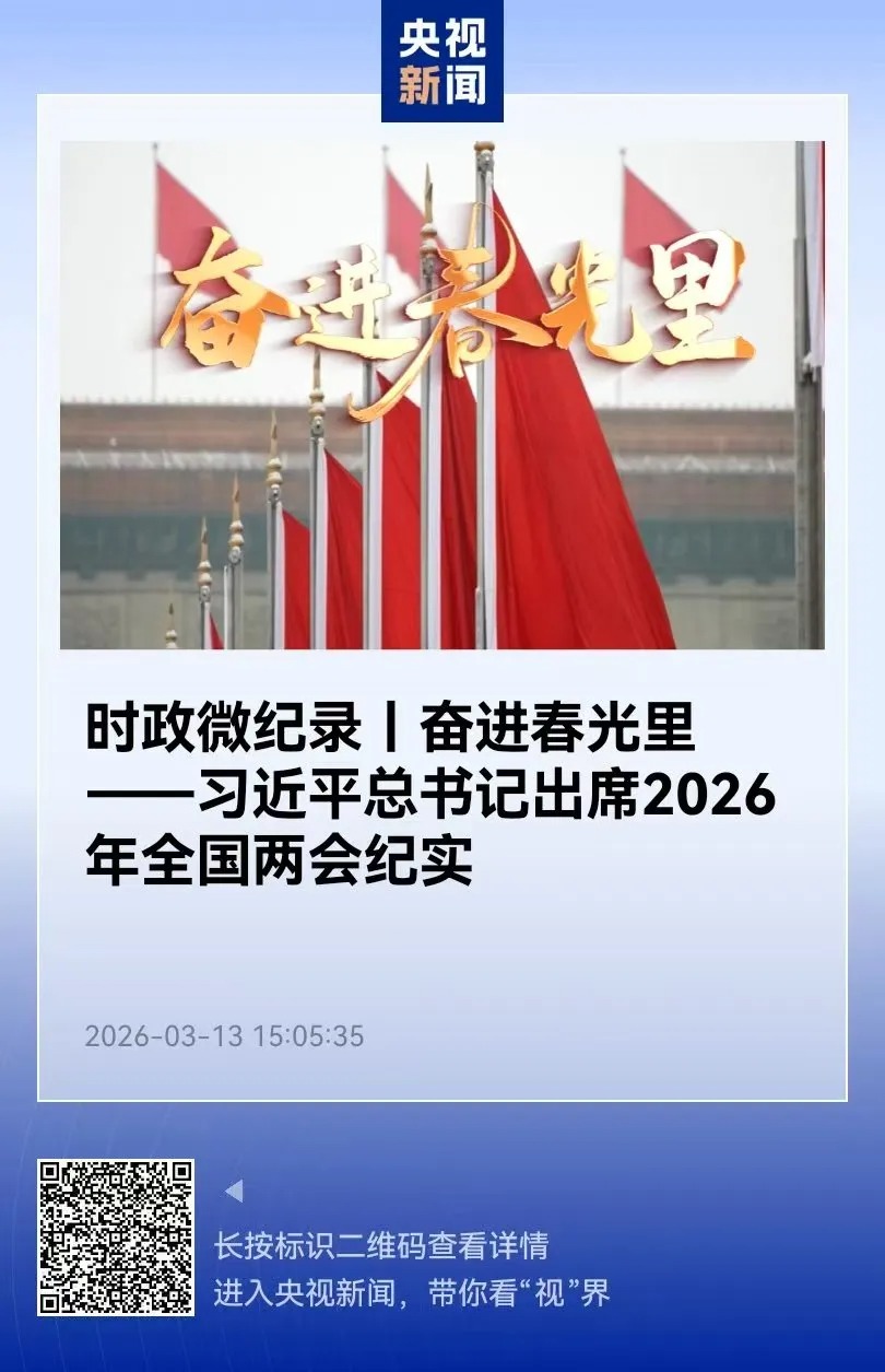 1.时政微纪录《奋进春光里——习近平总书记出席2026年全国两会纪实》用独家视音频全景式回顾习近平总书记出席这场春天的盛会,与代表委员共商国是的生动场景,为“十五五”开局之年凝聚人心、凝聚共识、凝聚智慧、凝聚力量。