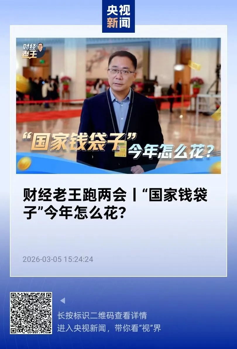 4.央视新闻频道《财经老王跑两会》聚焦政府工作报告中的4%左右的赤字率安排、5.89万亿元赤字规模等关键数据,深入浅出地解读超长期特别国债、以旧换新补贴、城乡居民增收计划等政策举措,清晰展现更加积极的财政政策如何惠及百姓生活、增强发展后劲。
