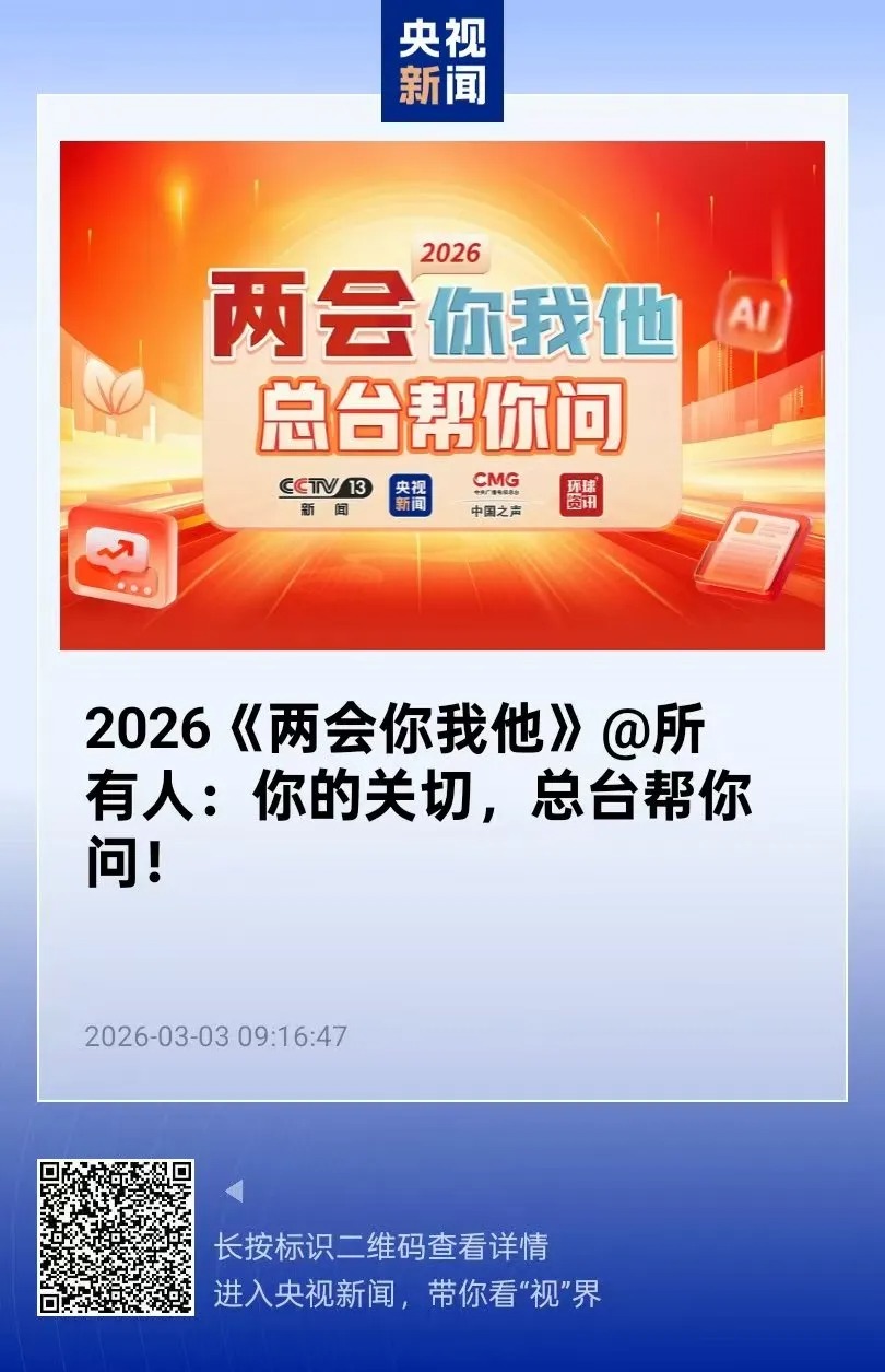 2026年全国两会期间,中央广播电视总台充分发挥电视、广播、新媒体及85种语言对内对外传播平台的强大优势,近3000人的团队尽锐出战,紧扣时代主题、贴近民生关切、创新话语表达,用心用情宣传阐释习近平总书记重要讲话精神,有力有效讲好全过程人民民主故事。