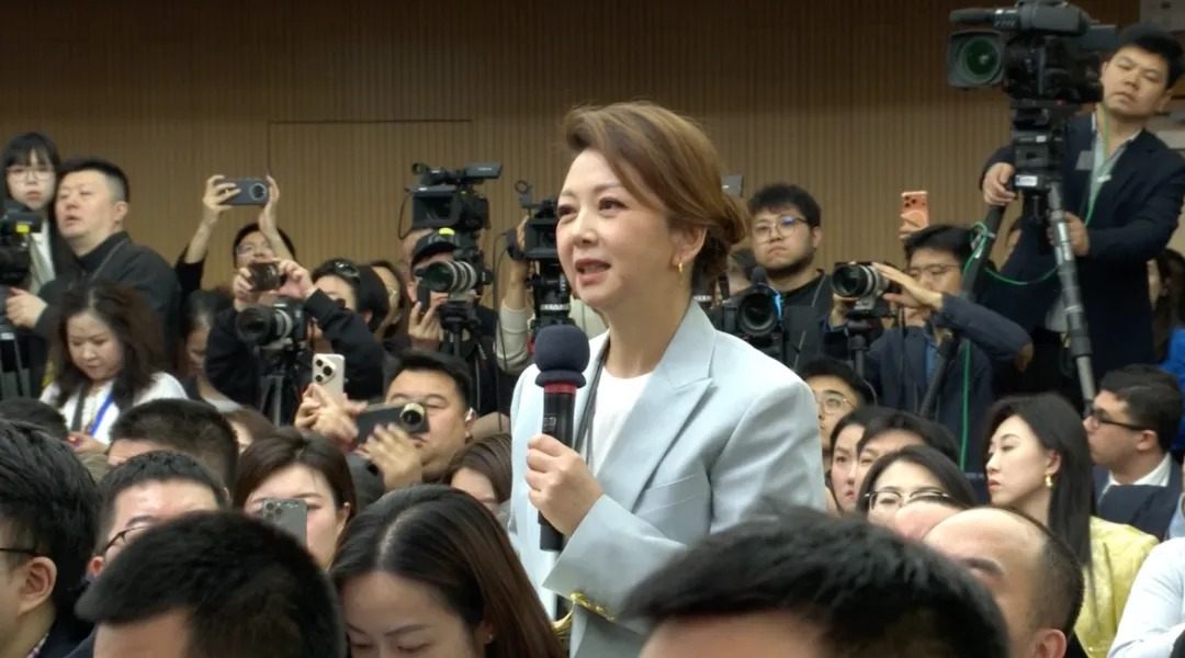 3月3日,央视财经频道记者平凡在政协发布会现场报道。