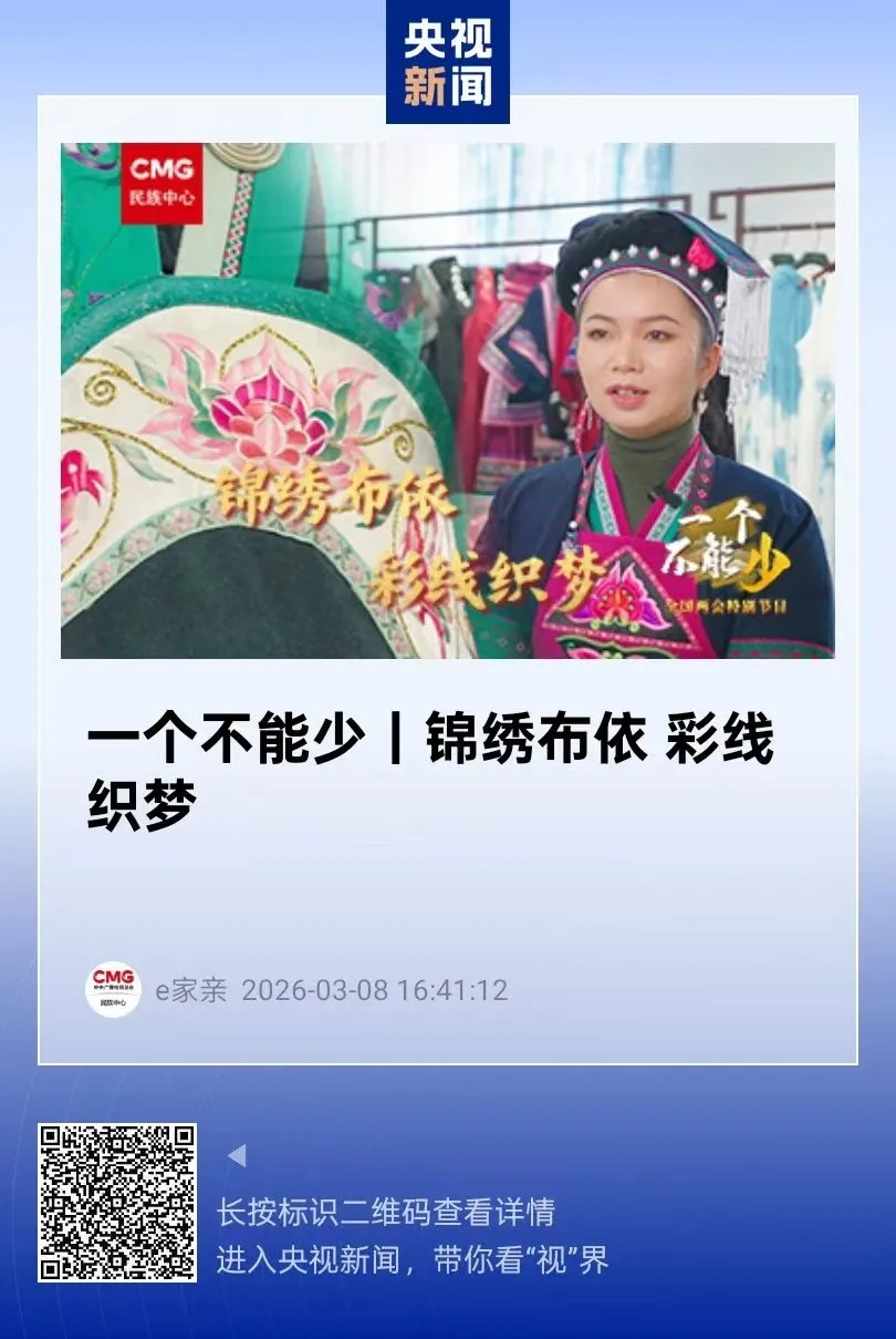 3.少数民族语言广播融媒体报道《一个不能少 | 锦绣布依 彩线织梦》等,采访少数民族代表委员讲述履职实践与思考,呈现各民族同心奋进的时代图景。