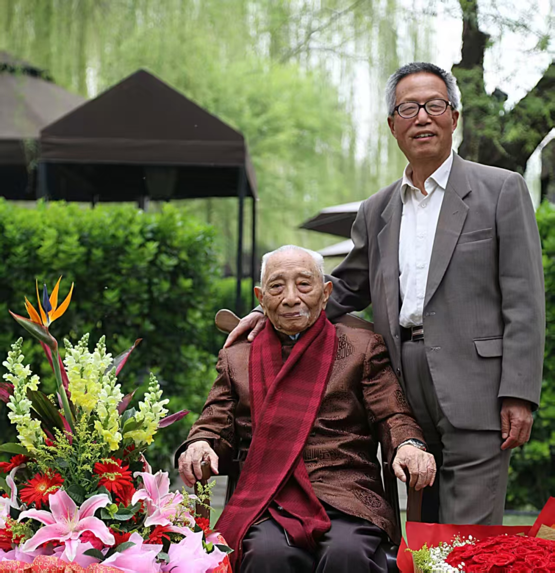 图为作者2015年在甘老师百岁寿辰时与甘老师合影